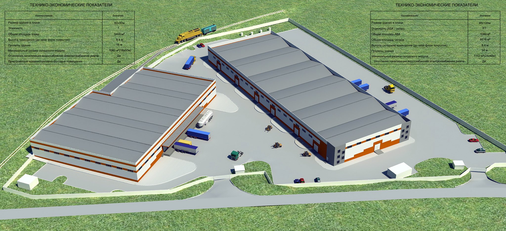 4. Подобраны оптимальные характеристики: производственно-складские площади - от 1 000 до 10 000 м2; высота потолков - 8,4 м; ширина пролетов - 18 м. АБК - многоэтажные.