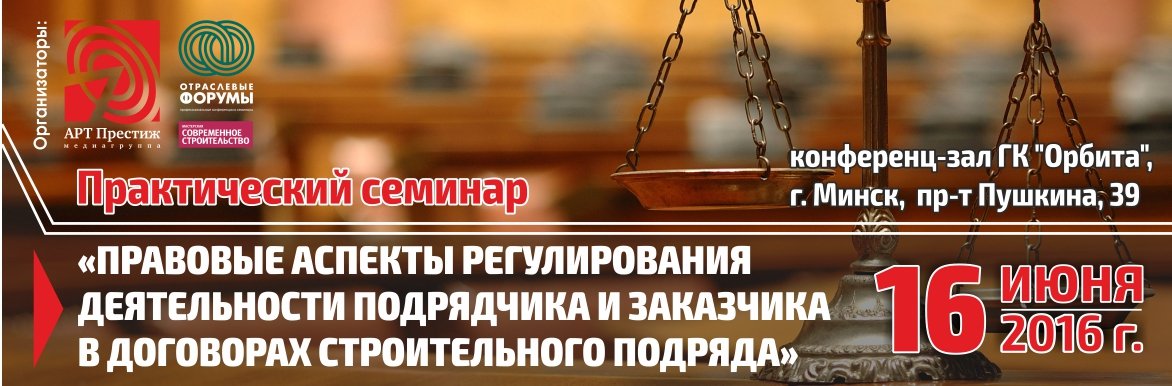 В Минске пройдет семинар «Правовые аспекты регулирования деятельности подрядчика и заказчика в договорах строительного подряда»